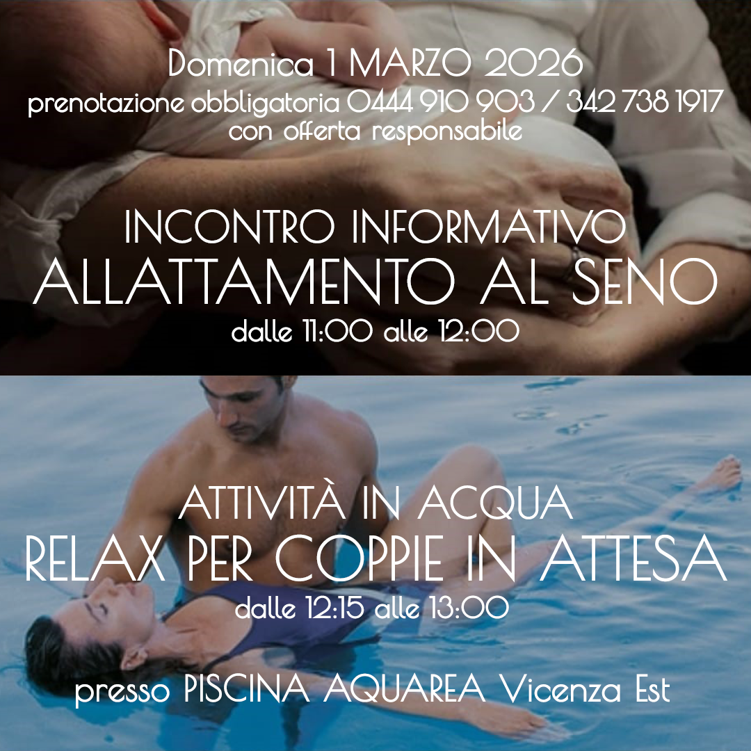 Attività guidata da Marialuisa Toniato, insegnante certificata "crescinacqua - in attesa della nascita": immersi in una piacevole atmosfera con musica soft, avvolti dall’acqua calda, massaggiati e cullati dal/la partner con movimenti lenti e morbidi, sperimenterete sensazioni di rilassamento profondo oltre che di sintonia con il/la vostro/a piccolo/a e con il/la vostro/a partner.